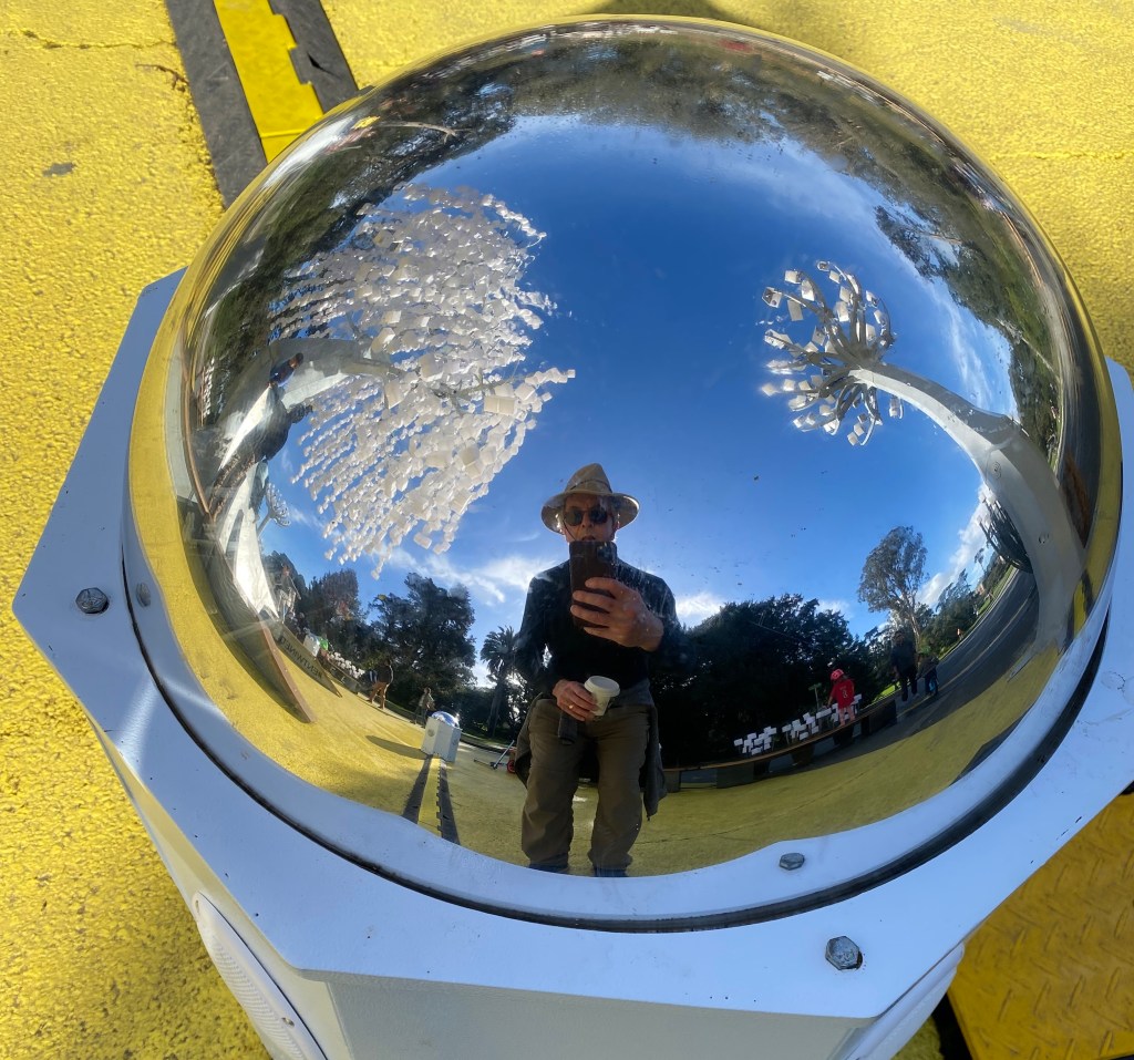 If I were a musician (I’m not), the year was 1971 (it isn’t) and I was about to release a new album (again: no), this would undoubtedly be my album cover photo. It’s got all the requisite ’70s stuff: trippy perspective, weird tree-like structures and, there in the middle, a mysterious-looking guy in shades, doing… what, exactly? Just switch out the iPhone for a set of Panpipes and there I am: a be-hatted hippie in Golden Gate Park, tootling a Jethro Tull cover…