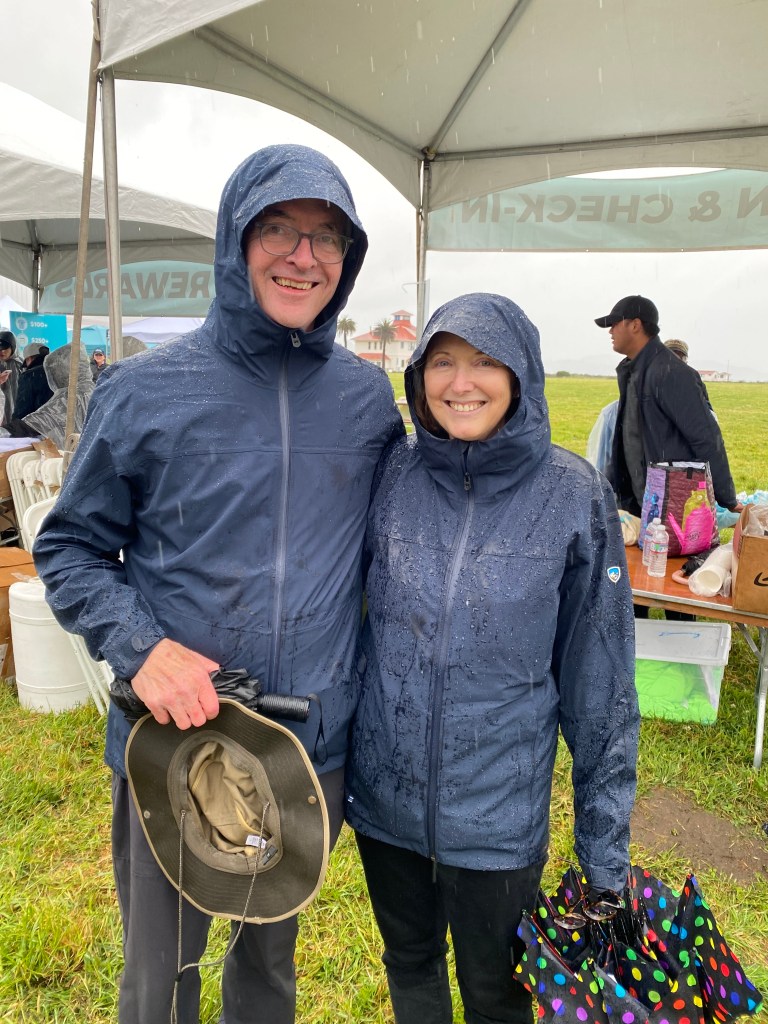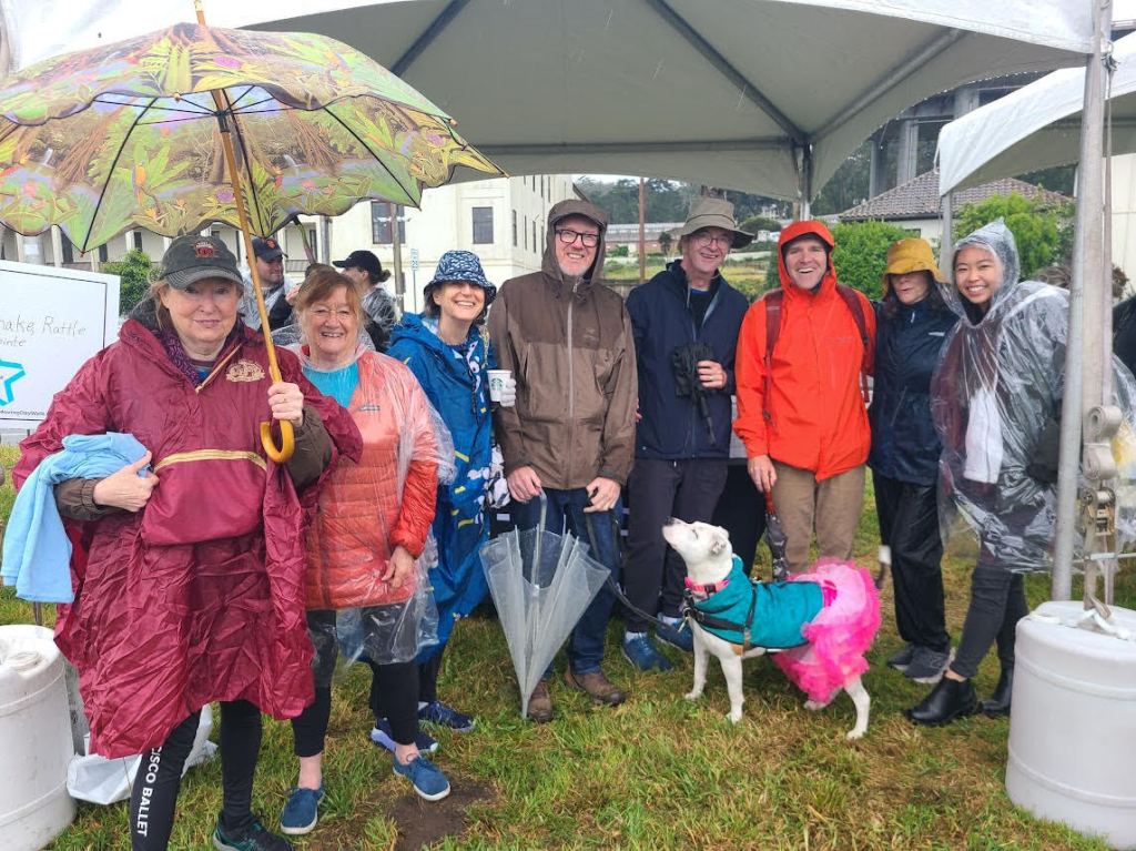 Our original plan had been to walk to Crissy Field from our apartment in the Presidio with our good friends, Pauline and Tom (who had hydroplaned the 50 miles from their home in Santa Rosa that morning to cheer us on), up over the south end of the Golden Gate Bridge, and down a steep set of steps to meet up with our SF Ballet team (a.k.a. “Shake, Rattle and Pointe”). It’s normally about a 45-minute walk, but, figuring it would take about twice as long, given the weather (and maybe even longer, as we would likely have been blown off the bridge and right into the Bay), we opted to get there old-school style. We drove.